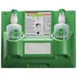 Wall stations have sealed, sterile, bottles that contain Eyesaline – a buffered, saline solution superior to tap water for emergency eye care