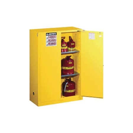Protect workers, reduce fire risks, and improve productivity by storing flammable fuels and chemicals in code-compliant safety cabinets. Designed to meet OSHA and NFPA standards, Sure-Grip EX cabinets are constructed of sturdy 18-gauge (1-mm) thick double-wall, welded steel with 1-1/2-in (38-mm) of insulating air space for fire resistance. High-performance, self-latching doors close easily and securely for maximum protection under fire conditions. Fail-safe closing mechanism ensures three-point stainless steel bullet latching system works every time.