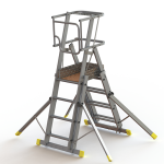 The Teleguard is the ultimate telescopic work platform, allowing for simple, rung by rung, height adjustment. This work platform offers maximum stability and safety, using double guardrails, steel toe boards, and a positive locking gate to ensure safety while on the platform and rubber feet to prevent movement. Teleguard is available in three heights, allowing for safe working heights of 3.63m, 4.21m, and 4.45m.