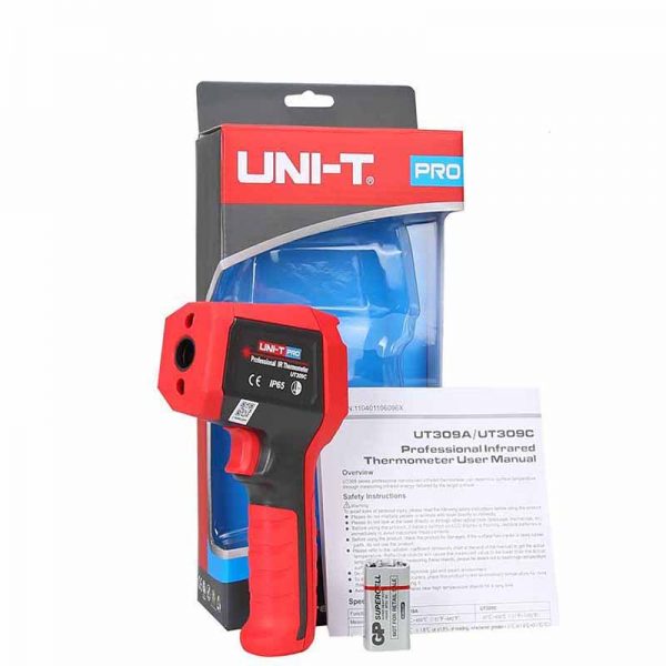 UT309 series professional infrared thermometer can determine surface temperature through the energy radiated by the target surface. It is designed to meet some of the highest protection ratings in UNI-TÃ product line, IP65 and 3m drop proof. With a rapid response rate of 250ms, high measurement accuracy, and multiple scanning modes, UT309 proves to be a necessary tool for engineers and technicians working in a various elds such as electrical distribution inspection, HVACR maintenance, transportation equipment inspection, instrument repair, and many more.