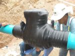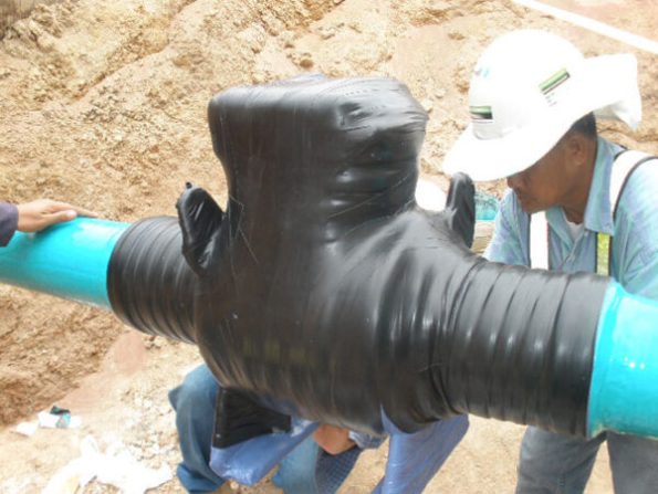 The Viscotaq PVC Outerwrap shall be spirally wrapped using a minimum 1″ (25 mm) overlap on all applications. Apply sufficient tension to provide continuous adhesion of the tape. When applied over Viscotaq products, Viscotaq PVC Outerwrap should be wrapped with tension and a minimum of 50% overlap. The first and termination wraps should be a straight circumferential wrap. A ¼†section of Viscotaq product should still be